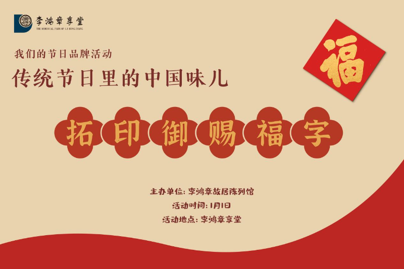 元旦當天,李鴻章享堂推出“拓印御賜福字”活動,可親手印制吉祥福字;2026年1月2日至3日還有“十二生肖迎新年”互動游戲,贏取限定紀念品。2026年1月下旬還將推出主題展覽。