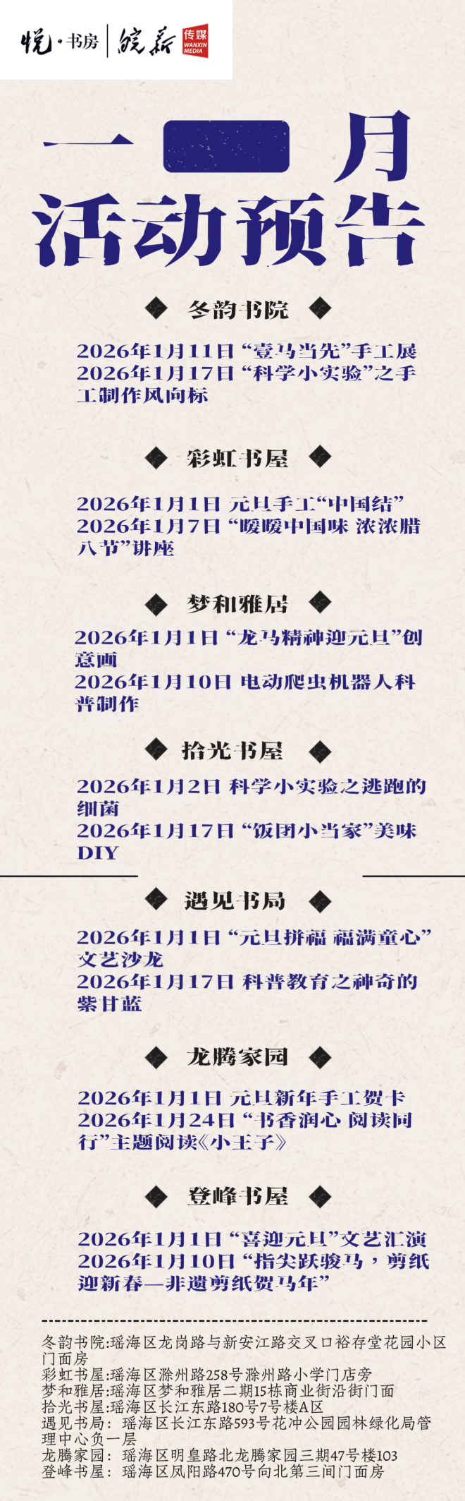 2026年1月3日,田園還將開展“扭扭棒新年煙花手作”活動,用指尖創(chuàng)意迎接嶄新一年。2026年1月10日,瑤海音樂廳將帶來一場致敬Beyond金曲新年演唱會,讓你我重回搖滾黃金時代。