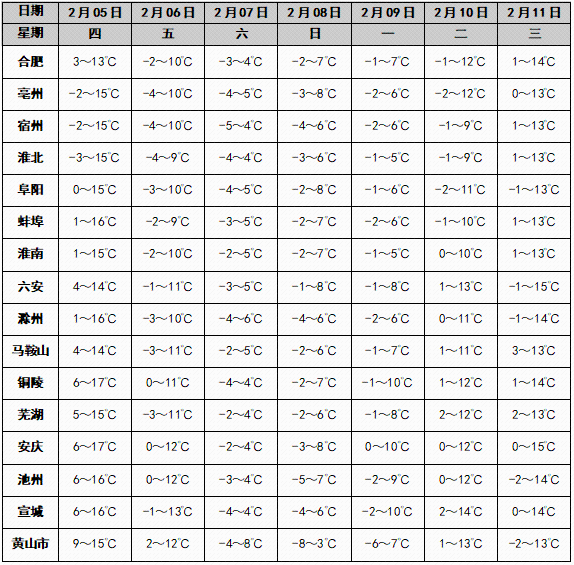 過程最大積雪深度:江淮南部和江南東部0~2厘米,高海拔山區(qū)4~8厘米。氣溫和大風:受冷空氣影響,全省平均氣溫將下降8~10℃;同時,全省東北風逐漸增強至4級,陣風7~8級,山區(qū)和水面9級左右。過程最低氣溫預(yù)計出現(xiàn)在7日和8日早晨,本省山區(qū)最低氣溫-8~-6℃,其他地區(qū)-5~-3℃;之后全省氣溫緩慢回升。全省具體預(yù)報