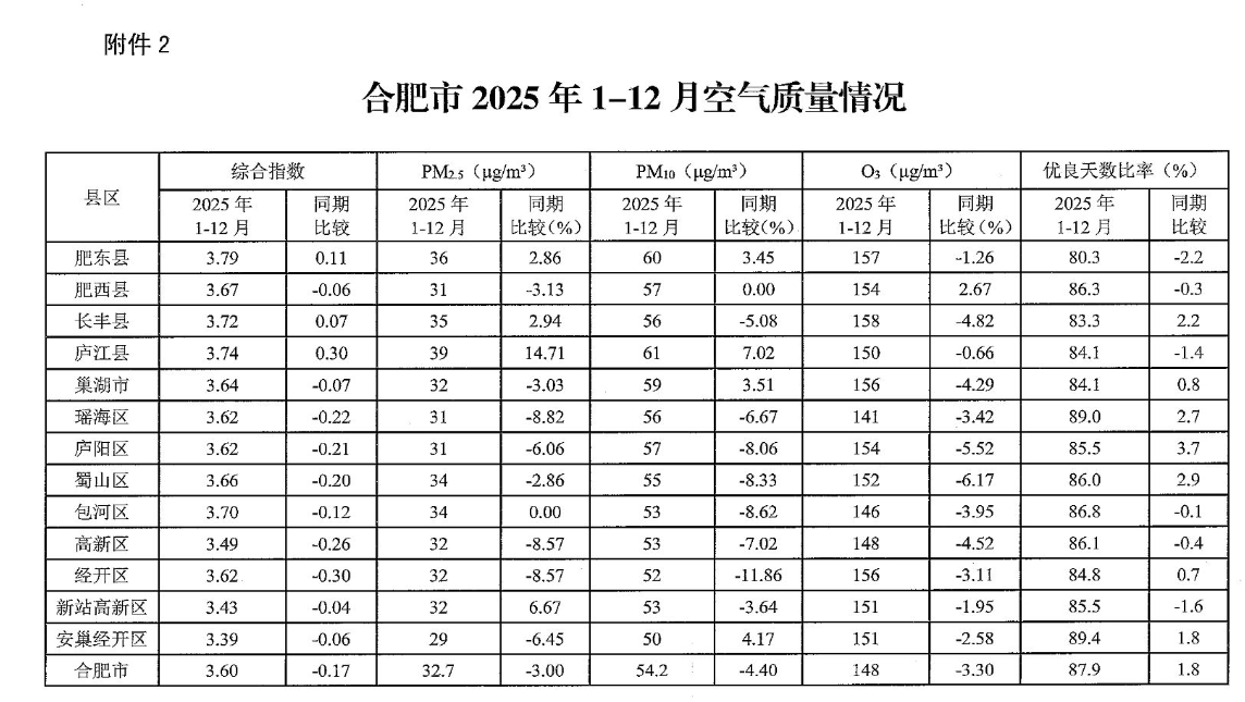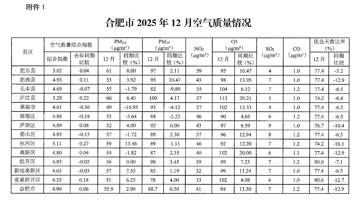 【大氣污染防治】關(guān)于2025年12月和1-12月全區(qū)環(huán)境空氣質(zhì)量情況的通報 |
